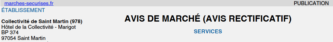 Informations complémentaires du marché: COLLECTIVITE DE SAINT MARTIN.