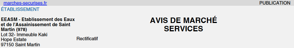 Nom de l'acheteur :  EEASM - Etablissement des Eaux et de l'Assainissement de Saint Martin (978)