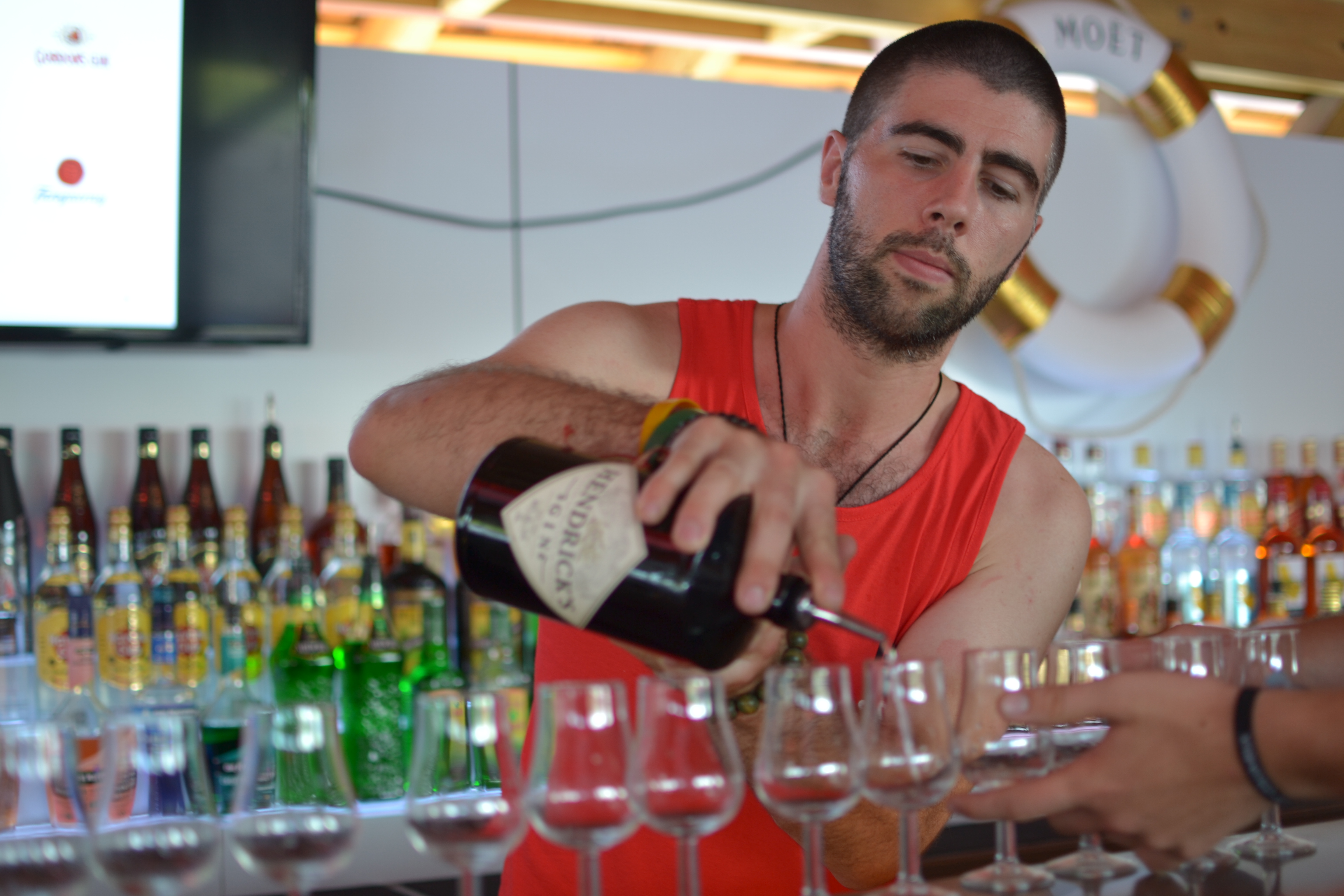 You may dream of studying in the sun, but those who plan to coast along, beware. "The training is very intense. I have never seen a 100% success rate. Regular work habits are essential," he states. In addition to mastering free pouring (the art of using the spout to pour as quickly as possible, to the nearest milliliter), to adapting the role of bartender to the establishment, and to learning eleven theoretical subjects (history, production, and classification of alcohols), students must learn 75 cocktail recipes by heart at a pace of six per day. To practice, they use water and colored dye. "On Fridays, we make all the cocktails we learned during the week for real so that they can taste them - without truly drinking them," notes Maxime Meuric, supported by another instructor, Balthazar Brey, a 30-year-old from Amsterdam. Brey’s specialty is a special technique called flair bartending, which consists of juggling bottles while preparing a cocktail. He also filmed an advertisement for the brand Bavaria in Curaçao, where you can see him demonstrate his talents. Although there are schools centering on this discipline and international competitions, at the St. Maarten school this is a bonus module that is not required for the diploma. "You don’t need to be able to use flair to be a bartender. But it can help with tips," acknowledges the head instructor.