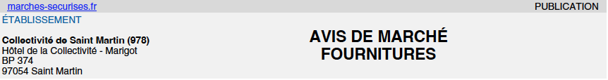 Contact : COLLECTIVITE DE SAINT MARTIN, Hôtel de la Collectivité - Marigot BP 374, 97054 Saint Martin, FRANCE.