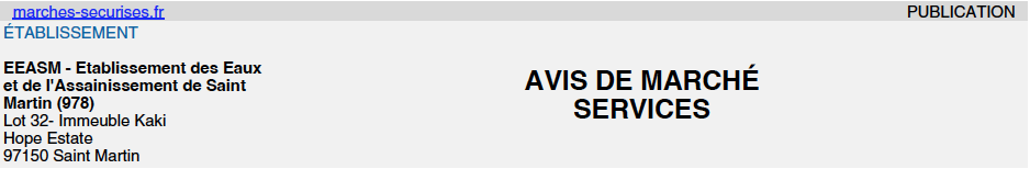 Objet du marché : Prestation de suivi permanent de la qualité d'eau de mer prélevée pour la production d'eau potable sur les paramètres physico-chimiques : turbidité, conductivité - salinité et température