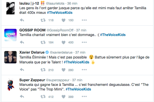 Mais sa voix n’a pas suffisamment séduit le public, du moins celui qui a voté en envoyant des SMS. Car sur les réseaux sociaux, Tamillia avait conquis le cœur de beaucoup.