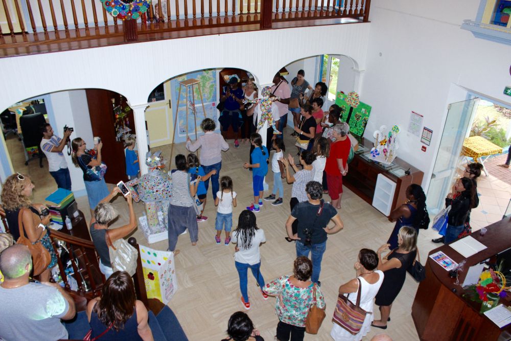 775 élèves de la circonscription répartis en 32 classes, de la petite section au CM2, ont travaillé pendant deux mois à l’élaboration de 32 œuvres étonnantes tantôt en 2D tantôt en 3D. Il s'agissait de réaliser des compositions à plat ou en volume autour du point et des gestes graphiques afin de dynamiser la créativité. Cela a également été l'occasion pour certains de découvrir des œuvres de référence, des mouvements artistiques et des artistes ayant traité du point : du pointillisme à l’art japonais en passant par l’art aborigène. « C’est prodigieux comment une simple consigne peut donner des œuvres si différentes » s’exclame Céline Renger, conseillère pédagogique Arts Plastiques au service de l’éducation des îles du Nord, auteur de la consigne et coordinatrice de l’opération. Et d’ajouter : « L’art est une forme de langage universelle et démocratique qui permet à chacun de s’exprimer en fonction de ses habilités et de ce qu’il a à dire. D’autant plus qu’à cet âge là les enfants n’ont pas de censure. »