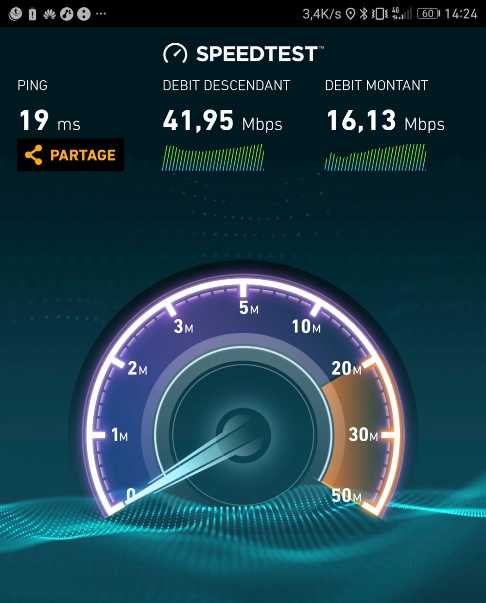 «plus de 40 Méga en débit montant et 15 Méga en débit descendant»