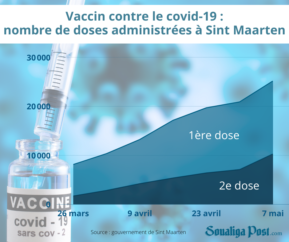 Le gouvernement de Sint Maarten a lancé sa campagne de vaccination fin février avec comme pour ambition de vacciner 34 000 personnes au total. Aujourd’hui, soit un peu plus de deux mois plus tard, il a réalisé 30 % de son objectif. Selon les derniers chiffres publiés, 10 234 personnes ont reçu au 7 mai les deux doses préconisées du vaccin Pfizer contre le covid-19 et 14 880 personnes une première dose.