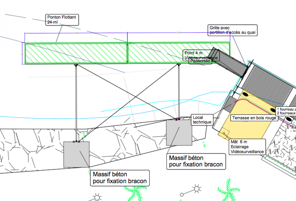 De plus, l’établissement portuaire souhaite créer un ponton flottant de 24 mètres de long et 2,5 mètres de large. Il sera implanté à partir du deck qui se situe dans le prolongement de la gare maritime. Une grille avec un portillon sera installée au bout du deck et donnera accès à une passerelle qui reliera le quai au ponton flottant. D’autres équipements seront installés en parallèle : un local technique, une vidéosurveillance.