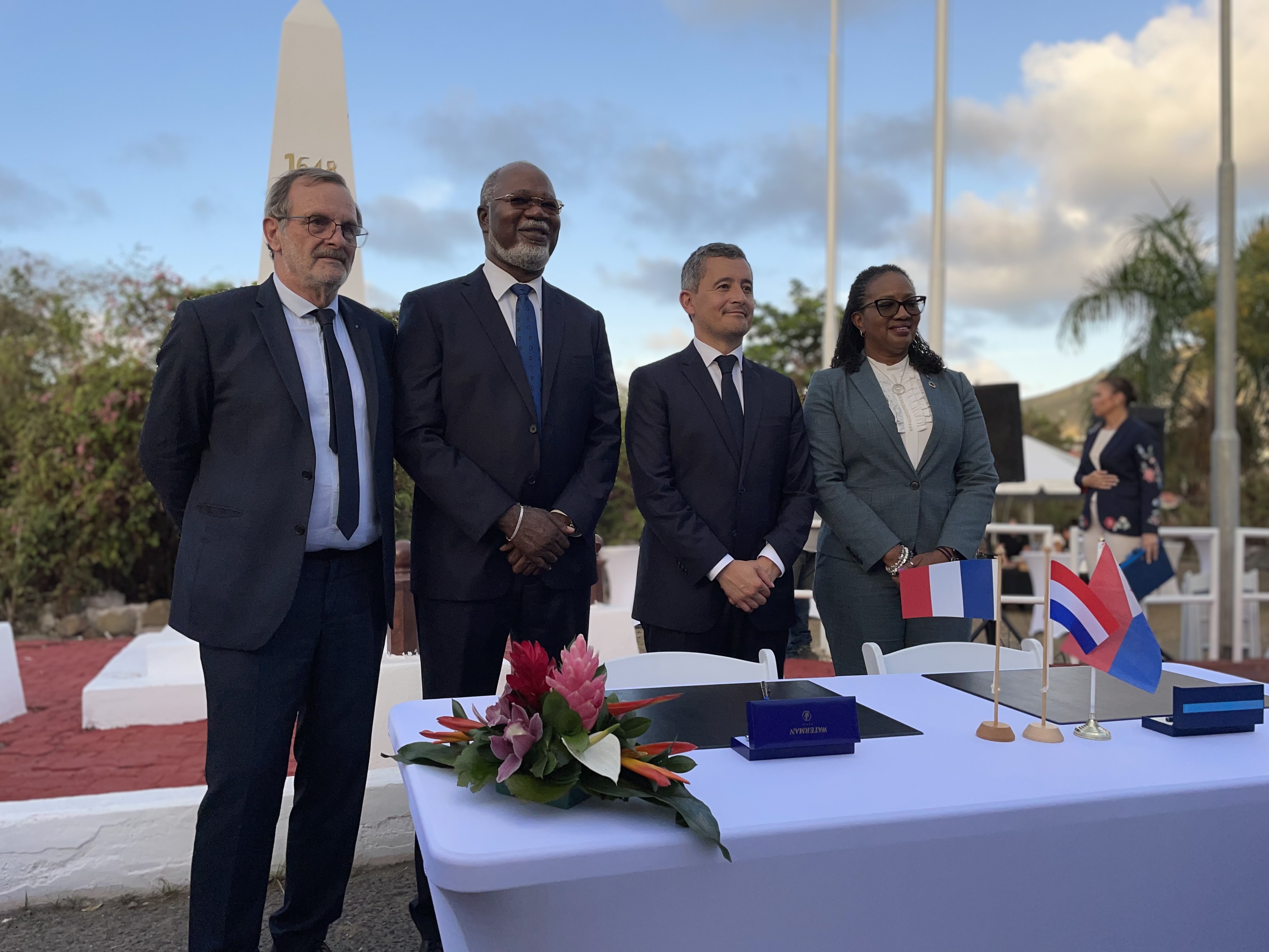 Gérald Darmanin a signé le traité au nom de la République Française et Silveria Jacobs, Première ministre de Sint Maarten, au nom du Royaume des Pays-Bas. La cérémonie officielle de signature a eu lieu en présence des hauts fonctionnaires de l’État français, le préfet de Guadeloupe, Xavier Lefort et le préfet délégué des îles du nord, Vincent Berton, du président de la collectivité, Louis Mussington ainsi que les membres du gouvernement de la partie hollandaise.
