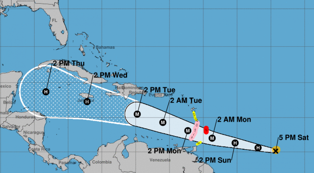 Selon les prévisionnistes du National hurricane center (NHC), Beryl devrait s’intensifier et passer sur le sud de l’arc antillais (Saint-Vincent, Grenade) dans la nuit de dimanche à lundi et lundi. Il devrait devenir un ouragan majeur (au moins de catégorie 3) dimanche en début d’après-midi.