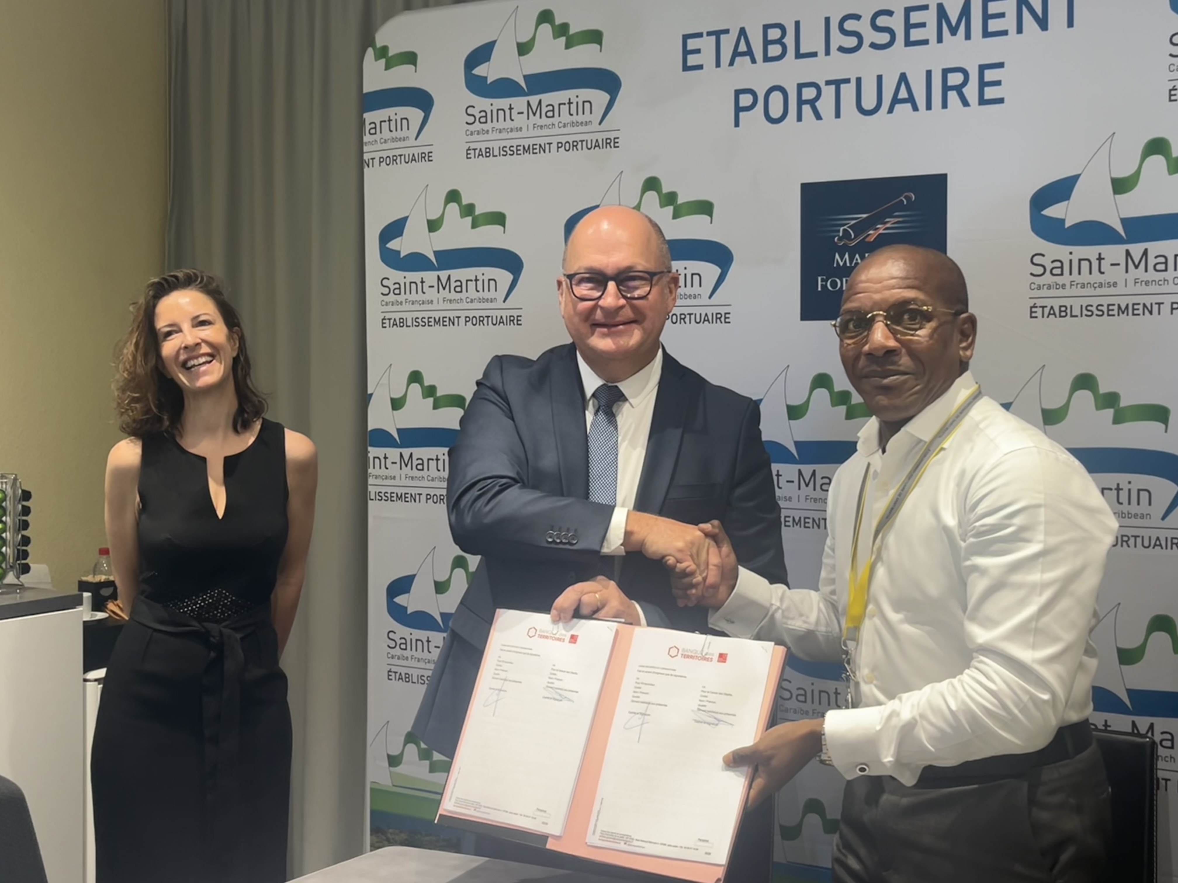 «Ce prêt consiste à nous accompagner dans le projet d’amélioration et de compétitivité du port» introduit Albéric Ellis, directeur général de l’établissement portuaire de Saint-Martin. Jeudi 6 février, il signait avec la Banque des Territoires, un prêt dédié à la transformation écologique. D’un montant de 3,2 millions d'euros, ce prêt permettra de financer la réhabilitation et l'extension du hangar de stockage de marchandises mais également la réfection de sa plate-forme logistique. «Ce soutien financier s’inscrit dans notre stratégie visant à promouvoir la transformation écologique et la cohésion sociale des territoires, en renforçant la résilience et la compétitivité des équipements essentiels au développement économique local» souligne Loïc Rolland, directeur régional Antilles-Guyane de la Banque des Territoires.