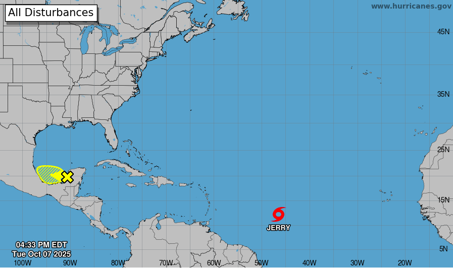 Une tempête tropicale baptisée Jerry évolue actuellement dans le bassin atlantique. À 15h30, elle était située à environ plus de 1700 km au sud-est des Petites Antilles.