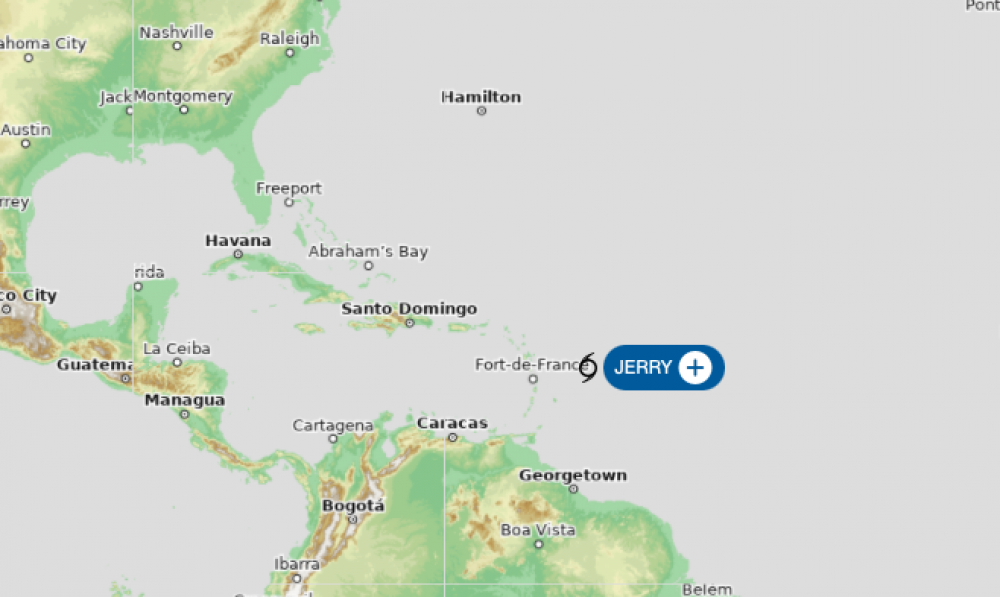 Météo-France précise que « les conditions environnementales devraient être favorables à un renforcement de Jerry en ouragan de catégorie 1 vendredi, avant qu’il n’adopte une trajectoire nord et s’éloigne de l’Arc Antillais ».