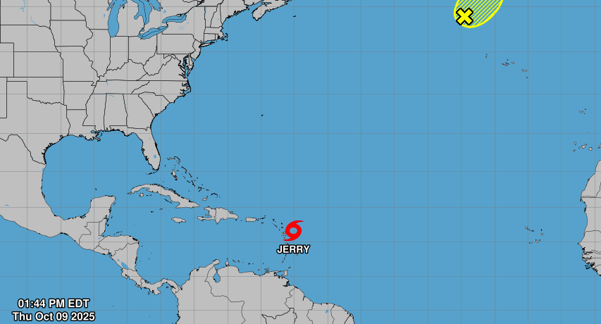 La tempête tropicale Jerry se situe actuellement à environ 200 km de nos territoires. Les modèles de trajectoires s’accordent vers un passage du système au plus près à 140 km de nos îles dès demain matin.