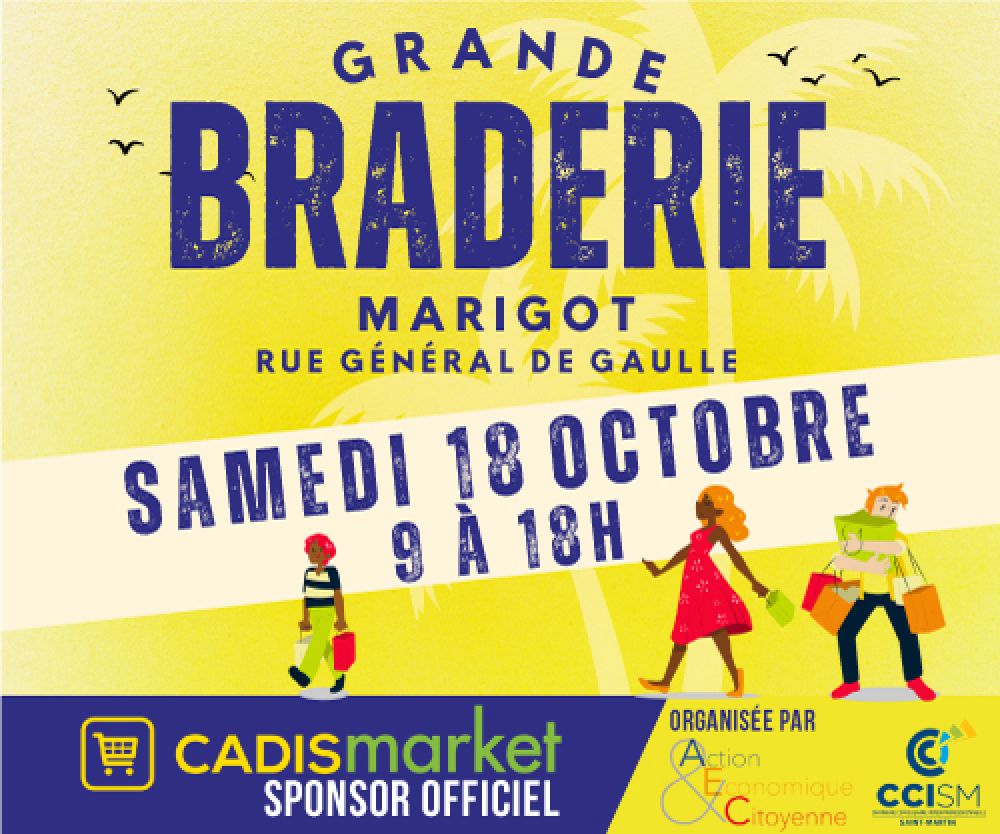 Initialement prévue le samedi 11 octobre, la grande braderie organisée par l’Association des Commerçants de Marigot, en partenariat avec la Collectivité de Saint-Martin et la Chambre Consulaire Interprofessionnelle de Saint-Martin, avait été reportée en raison de la météo. Elle se tiendra finalement le samedi 18 octobre.