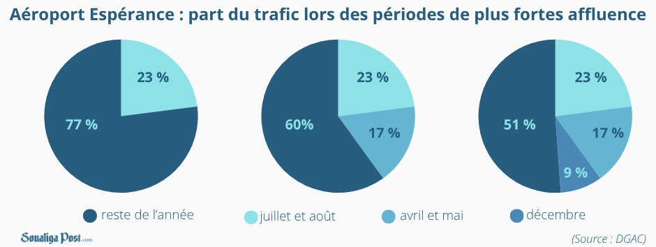 Lors de ces trois périodes de l'année, près de 49 % du trafic de l'aéroport sont réalisés.