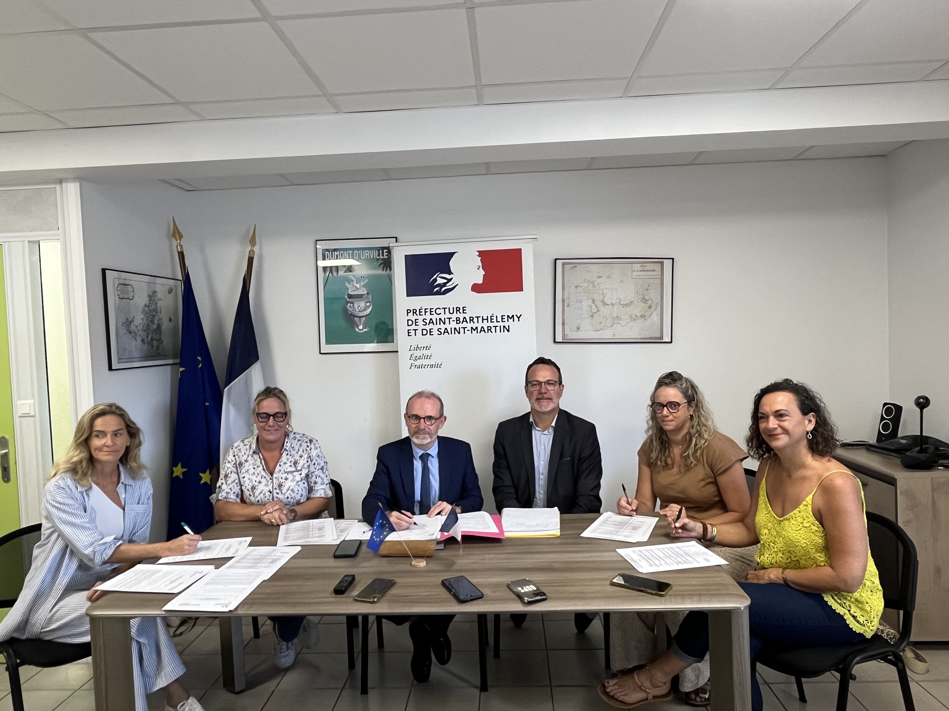 Ce vendredi 21 novembre, la préfecture a accueilli la signature des accords Bouclier Qualité-Prix (BQP) 2025. La réunion s’est déroulée en présence du préfet Cyrille Le Vély, du sécrétaire général Fabien Thibier et des représentantes des différentes enseignes. Mis en place en 2020 à Saint-Martin, le BQP repose sur un accord entre la préfecture et les distributeurs afin de proposer, pendant un an, une liste de produits dont le prix reste accessible et bloqué, tout en assurant une qualité optimale. Ces articles sont facilement repérables en magasin grâce à une pastille rouge portant l’inscription BQP.