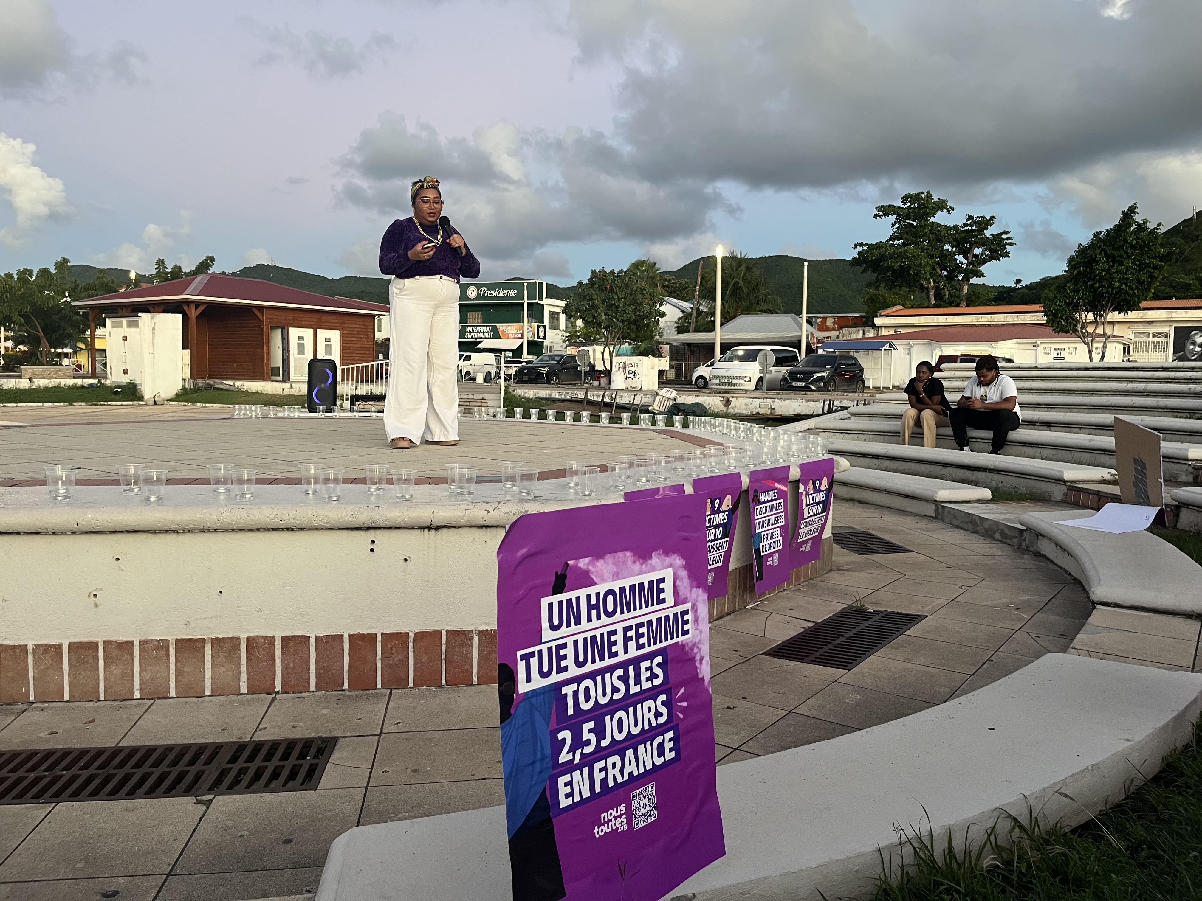 Contrairement aux marches organisées dans l’Hexagone, l’association a choisi un rassemblement statique, inscrit dans l’élan national initié par « Nous Toutes ». Ce moment de recueillement et de mobilisation a été rythmé par des hommages, des lectures de poèmes et plusieurs prises de parole engagées. À la tombée de la nuit, les participants ont allumé des bougies et cité les noms des victimes, avant de laisser place aux témoignages.