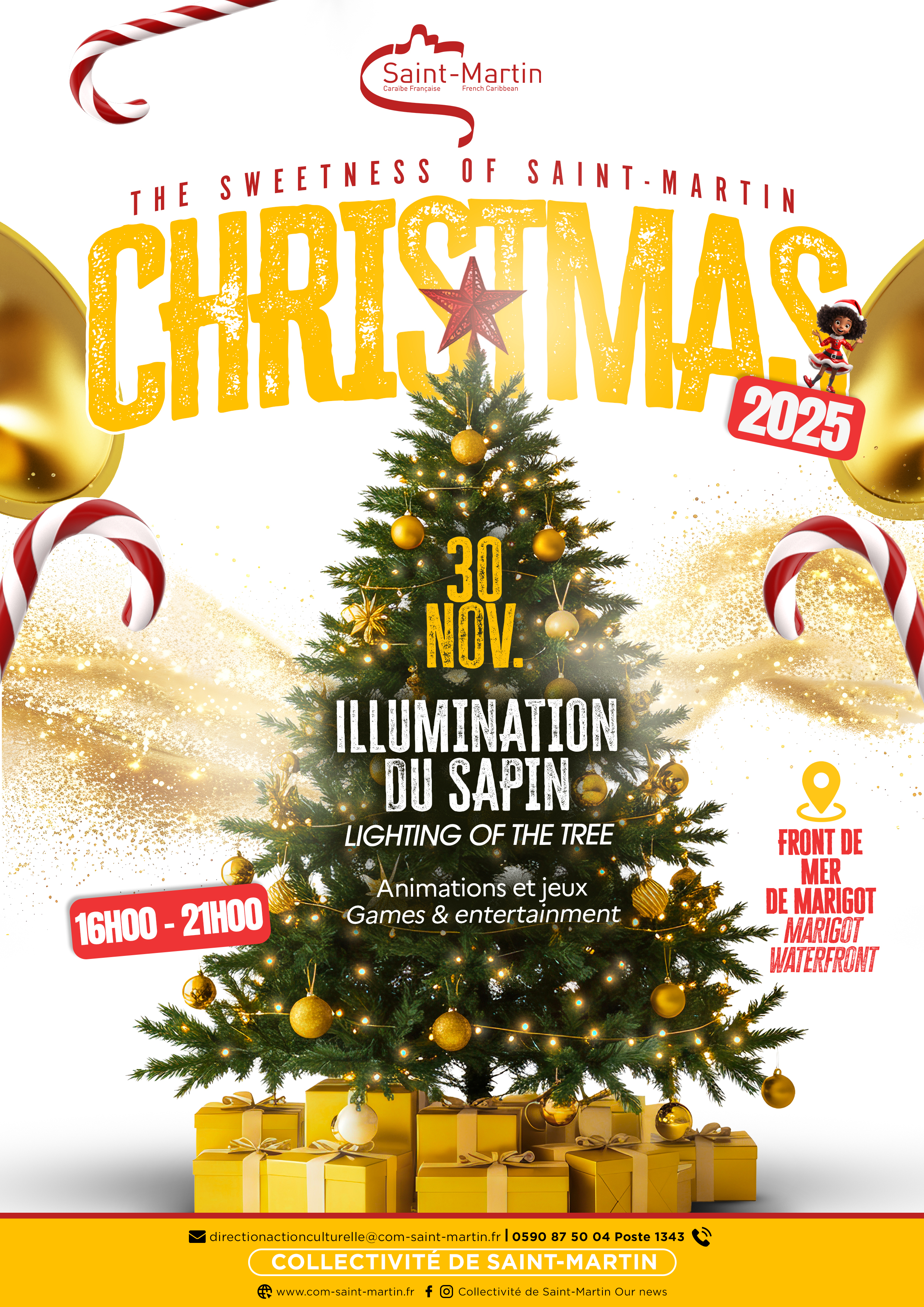 L’esprit de Noël s’installe à Saint-Martin ! Ce dimanche 30 novembre, le front de mer de Marigot s’animera pour célébrer le lancement officiel des festivités de fin d’année. Moment attendu par petits et grands, l’illumination du sapin de Noël viendra couronner une après-midi riche en animations, en musique et en partage.