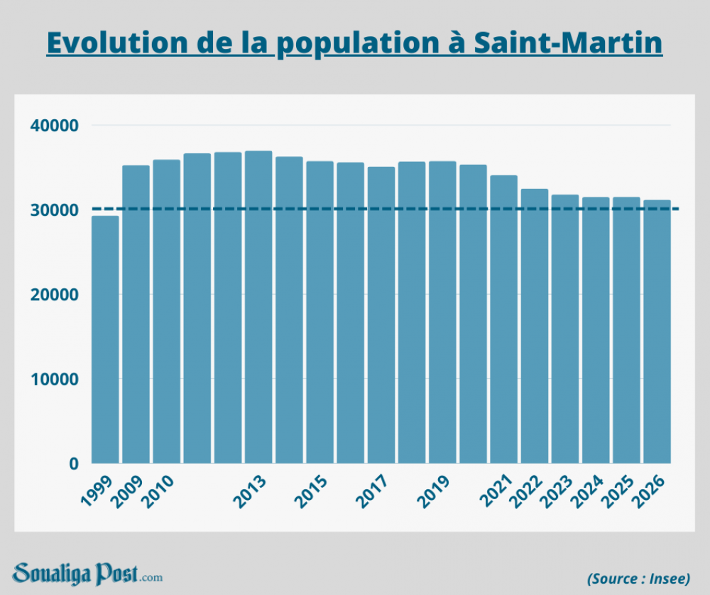 Selon l'institut de la statistique et des études économiques de Saint-Martin (Itsee), «cette régression [depuis 2017] est principalement imputable à un solde migratoire négatif (-6 281 habitants sur six ans) dont l’ampleur excède le solde naturel positif enregistré sur la même période (+ 2 107 habitants) ».