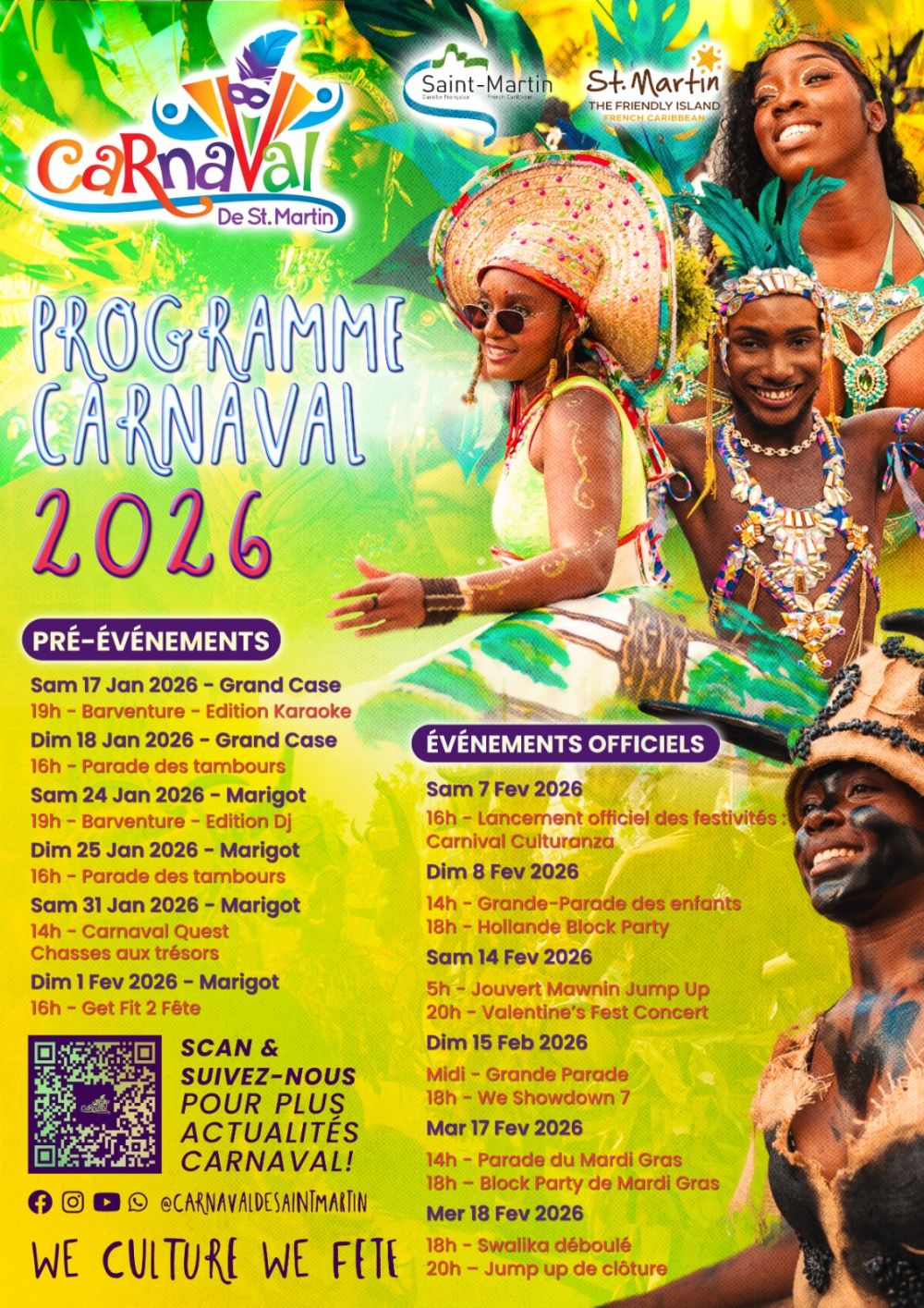 L’association Festivités Carnavalesques de Saint-Martin (FCDSM) lance une série de pré-événements marquant le coup d’envoi du Carnaval 2026.