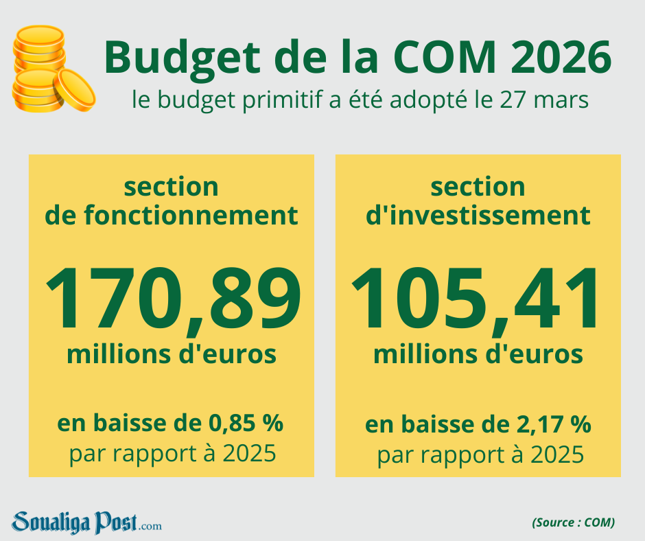 L'ensemble des dépenses prises en compte, la COM pourra effectuer un virement à la section d'investissement à hauteur de 20 millions d'euros (contre 32,2 millions en 2025), ce qui constitue l'autofinancement.