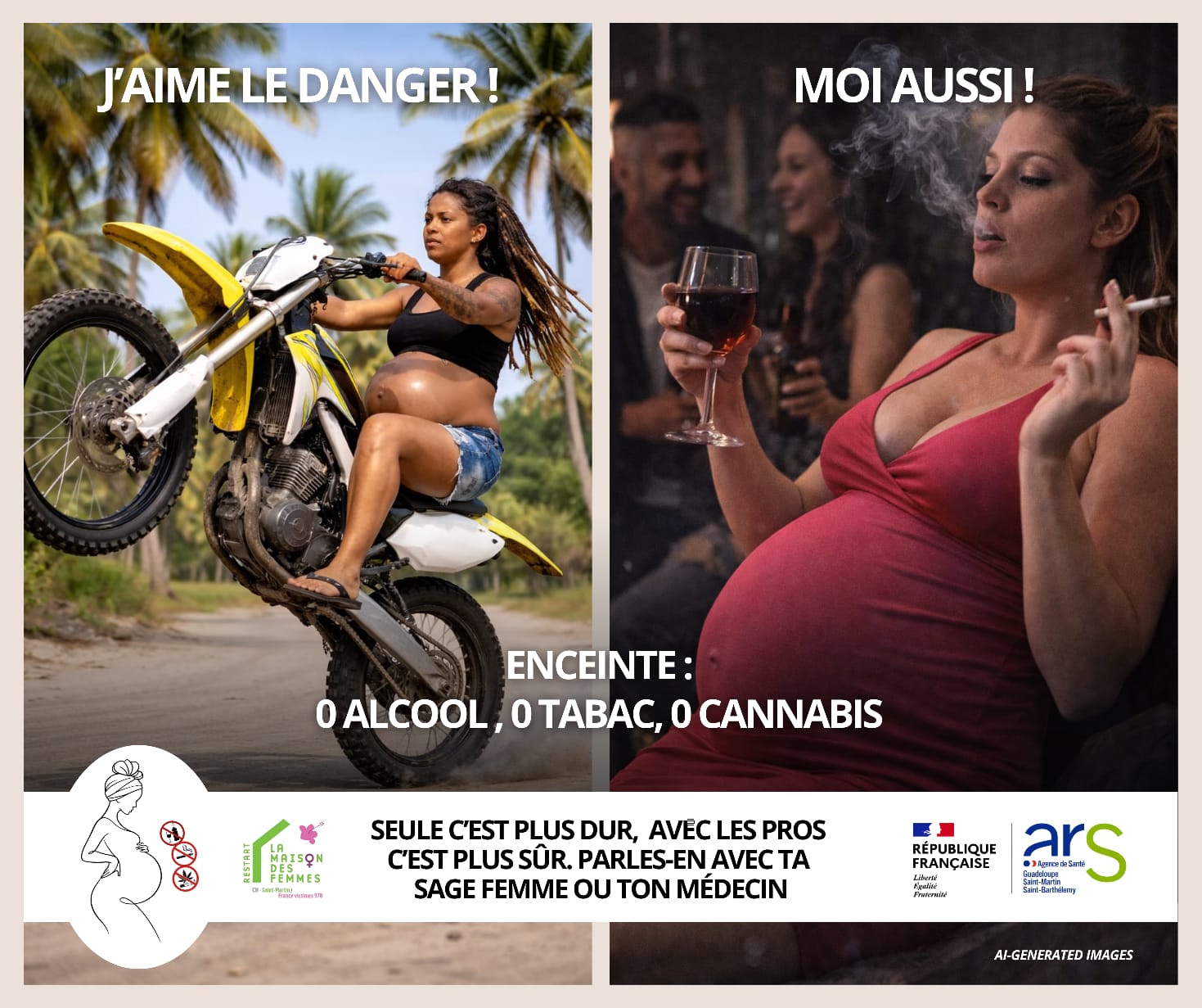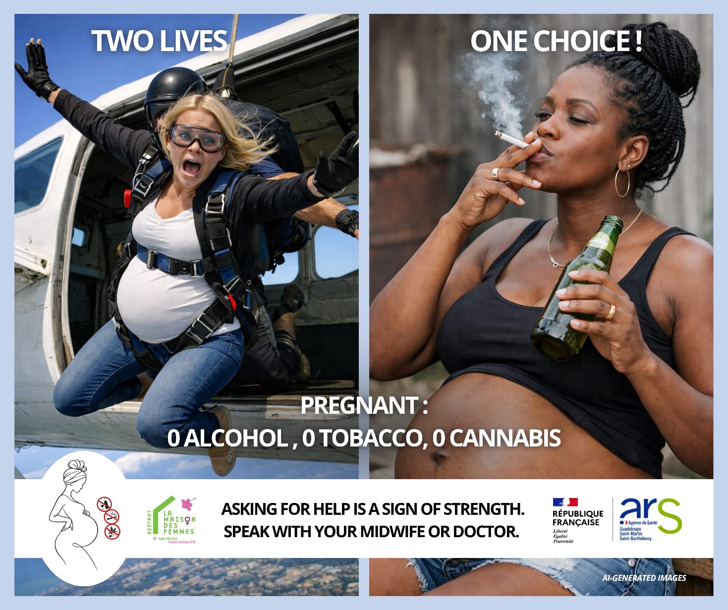 Cette campagne fait suite à un constat alarmant : à Saint-Martin, un nombre important de handicaps non génétiques est lié à la consommation d’alcool pendant la grossesse. Plusieurs facteurs expliquent cette situation : un manque d’information, une forte pression sociale autour de la consommation d’alcool, mais aussi la stigmatisation des personnes qui choisissent de ne pas boire. À cela s’ajoute un contexte local particulier, marqué par une forte présence de publicités pour l’alcool.