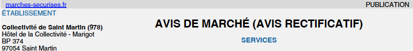 Description: EMISSION ET LIVRAISON DE TITRES RESTAURANT DEMATERIALISES POUR LE PERSONNEL DE LA COLLECTIVITE DE SAINT-MARTIN.