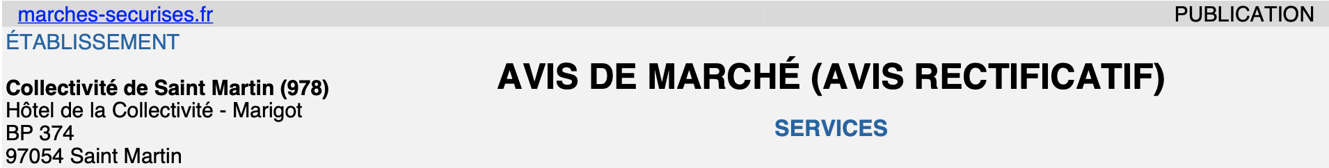 Nom de l'acheteur :  Collectivité de Saint Martin (978)